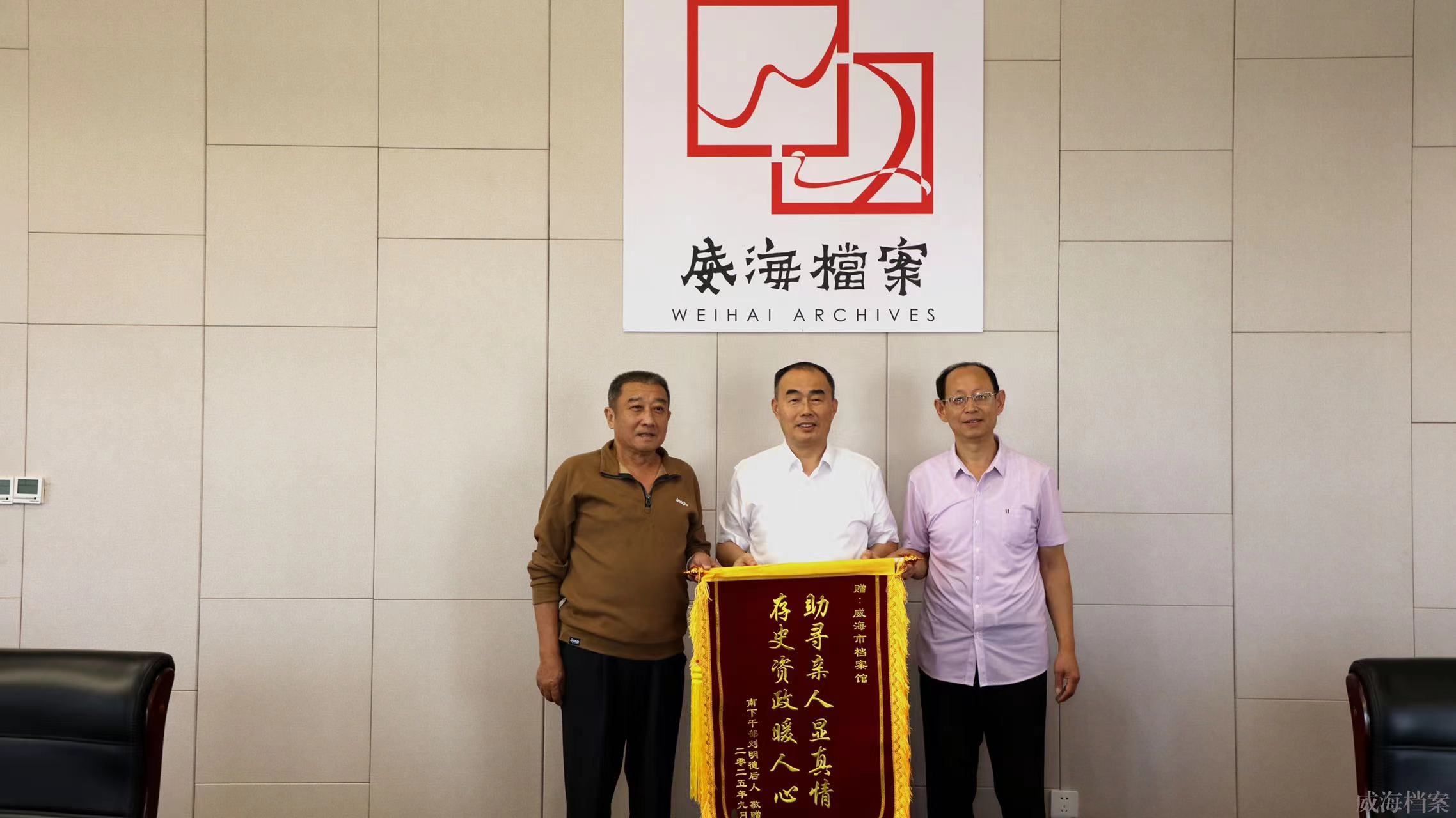 近日,来自厦门的年逾七旬的刘先生专程将一面写有“助寻亲人显真情 存史资政暖人心”的锦旗送至威海市档案馆,感谢档案馆帮助他与失联60多年的亲人威海宋先生一家相认团聚,圆了两代人一场跨越时空的团圆梦。